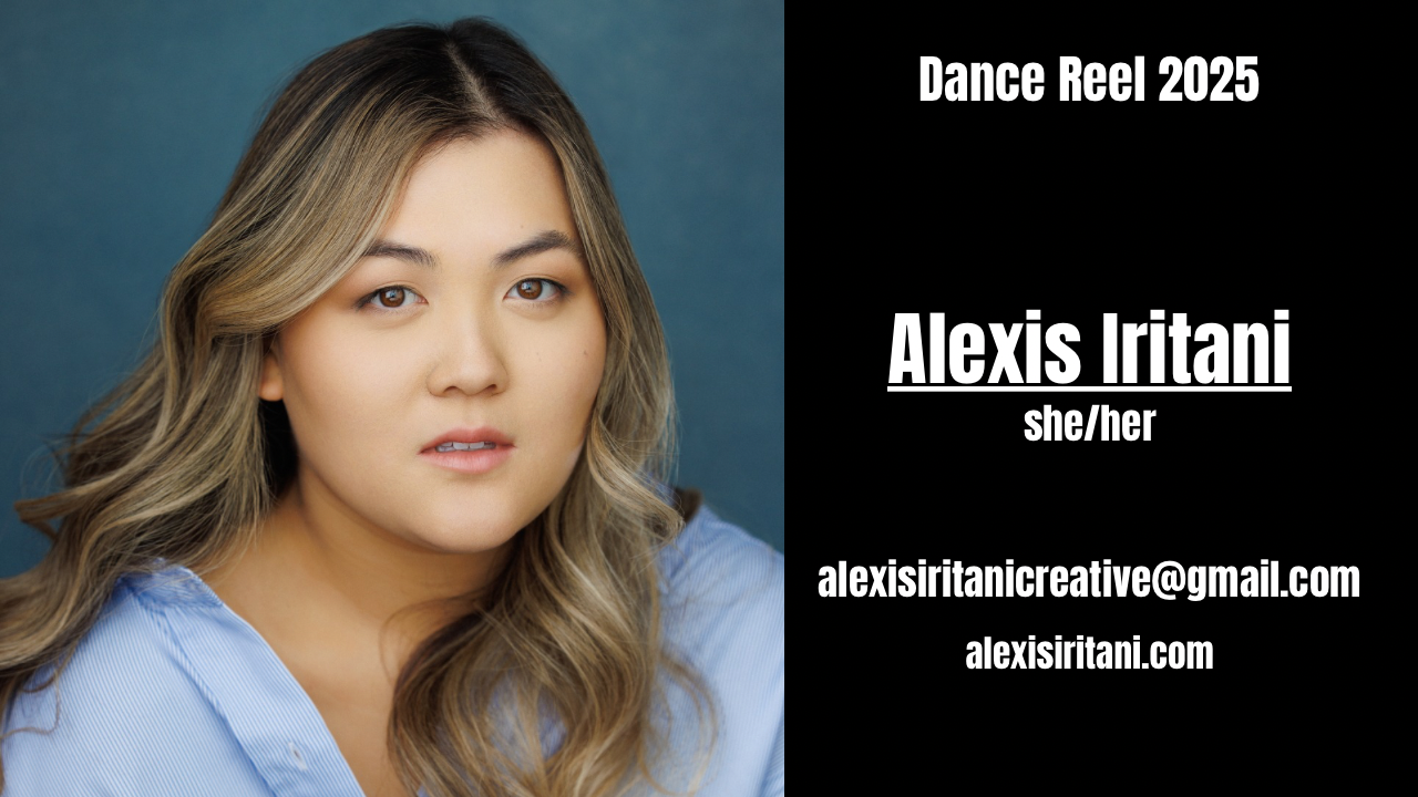 Alexis Iritani is a passionate dance artist, choreographer, actor, and lifelong student who challenges the boundaries of movement and storytelling. After graduating from UCLA with a Bachelor of Arts in Dance, she moved to London and received an MFA from Trinity Laban Conservatoire. She has recently worked with Givenchy Beauty as a principal dance artist and model in the "Irresistible II" Global Ad Campaign, Logitech as an OCP for the "Ergo" Line, and has worked with additional brands and musicians in both the US and UK. She has trained weekly in scene study and audition technique under Rachel Paulson from 2021 - 2024, and is currently seeking new representation. On top of her various dance and acting ventures, she is in the pursuit of creative directing in both movement and filmmaking spaces. Her 2025 work "Pacer" has over 2.8 Million views online and has resonated with audiences around the world. She is currently based in both San Francisco and London, and is a local hire to Los Angeles.